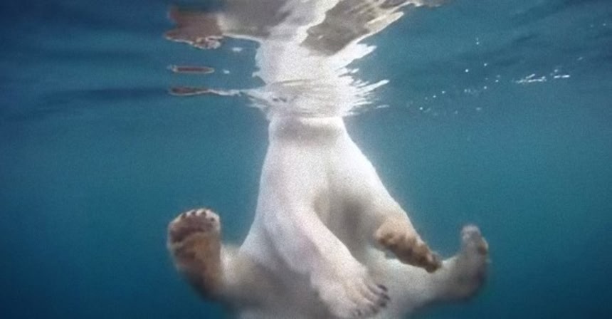 ホッキョクグマ(シロクマ)は犬かきスタイルでモフモフの足で水をかき分けながら北極海を優雅に泳いでいるんだね。GoProという高画質カメラで撮影したものなんだそうだけど、こんなに接近して撮影しているということはリモートコントロールかなにかかな?