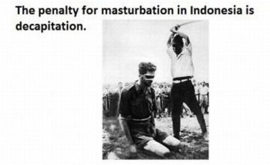 この画像を大きなサイズで見る3. インドネシアでは自慰行為をしたものは首をはねるという刑罰がある。