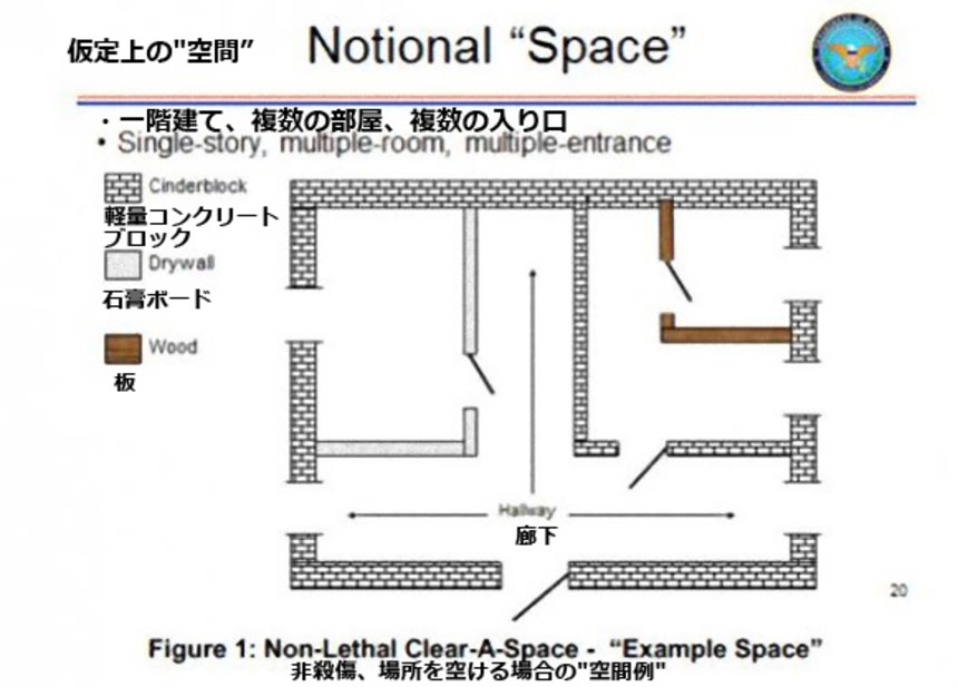 下の図は米海軍海洋研究所(ONR)が研究中の、人々を殺さずに退去させる手段を示す平面図である。