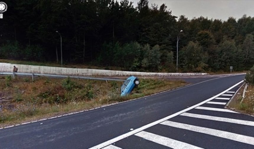 この画像を大きなサイズで見る世界中のいろいろな場所を見渡しながら観察することのできるGoogleストリートビュー。専用のカメラを車に装着しながら撮影してまわるわけだが、ナイスタイミングというかバッドタイミングというか撮影しているときに珍光景を捕えてしまうことがある。