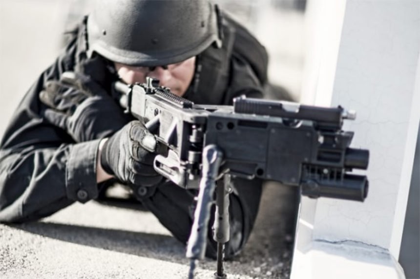 この画像を大きなサイズで見る初めて登場して以来長い間改良がなされ続けてきた開発途中の武器の一つがこのコーナーショット・ランチャーだ。その主たる目的は銃の先端を90度曲げる事で従来不可能であった建物の角からの攻撃を可能にし、より安全にするというものだ。しかしこの武器はその開発費用等の面から兵士一人当たりの費用が上がるため、国民からは批判の声も上がっている。