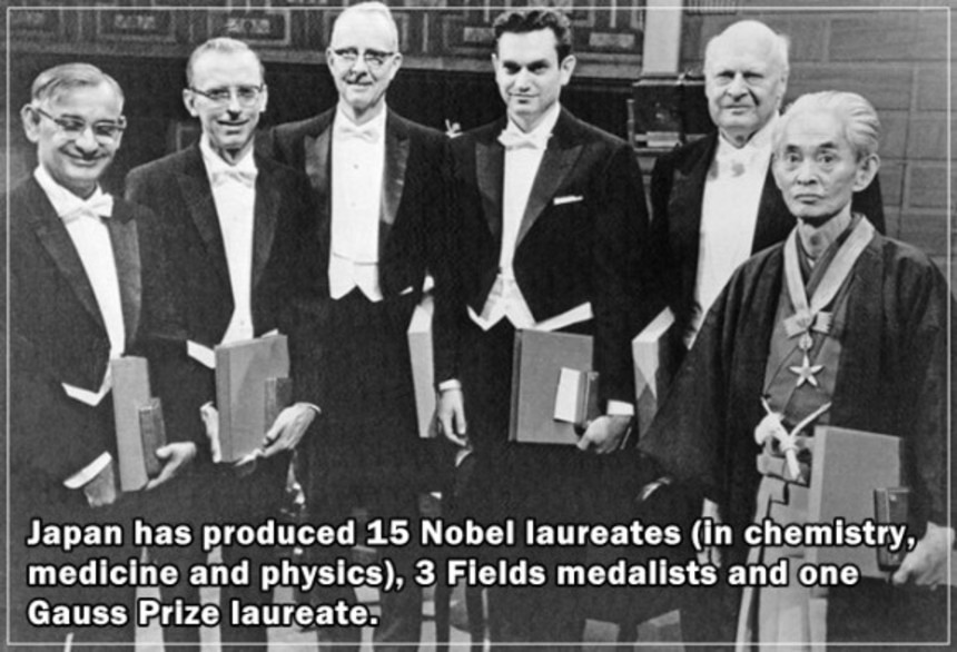 この画像を大きなサイズで見る日本は、15名のノーベル賞受賞者(化学賞、医学賞、物理学賞)、3名のフィールズ賞受賞者、1名のガウス受賞者を輩出している。