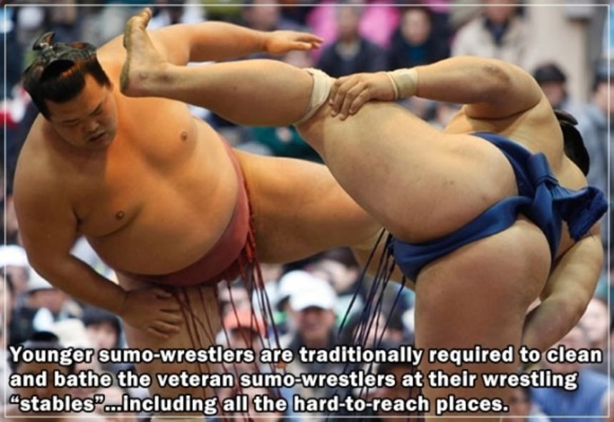 この画像を大きなサイズで見る相撲部屋では、若手の力士はシキタリとして先輩力士の身体を洗って差し上げなければならない…ちょっと手の届きにくい場所も隅から隅までだ。