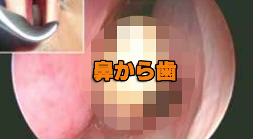 この画像を大きなサイズで見る鼻から牛乳ならぬ、鼻から歯である。
