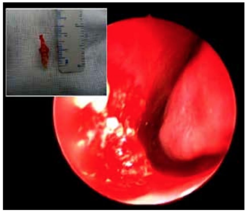 この驚きのエピソードを持つ人は22歳のサウジアラビアの男性で、一ヶ月の間に1~2回起こる鼻血に3年もの間苦しめられていた。医者が患者の診察で発見したのは、約1センチの象牙色をした骨状の物だった。