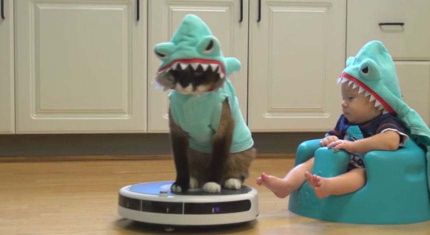 つまりはそういうことだ。猫サメと赤子サメがいるシュールな光景。猫サメの方はルンバに乗っかっているのだが、どんな動きにも完全対応。まったく降りようとしない、動じない。猫サメとしての風格は十分だ。