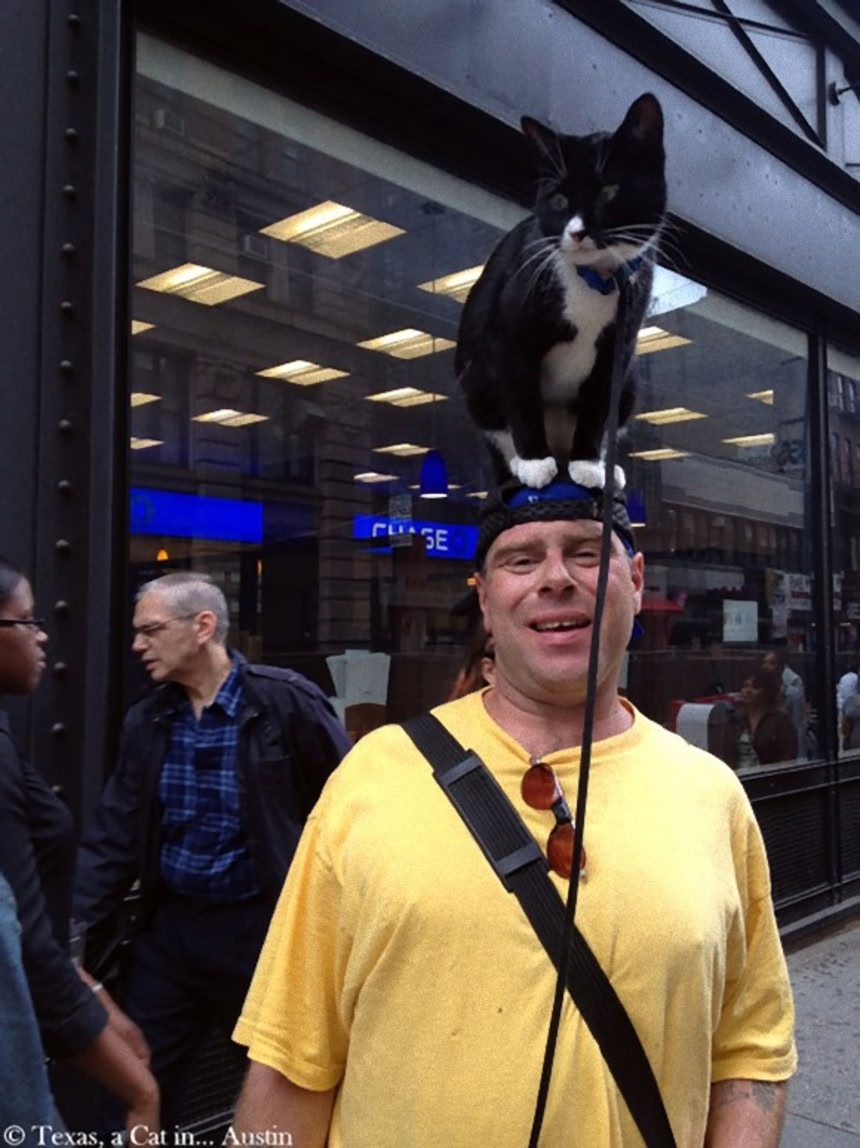 この画像を大きなサイズで見る■3.この体勢が楽なのかもしれないし、猫は頭の上にいるものという条件付けをしているのかもしれない。