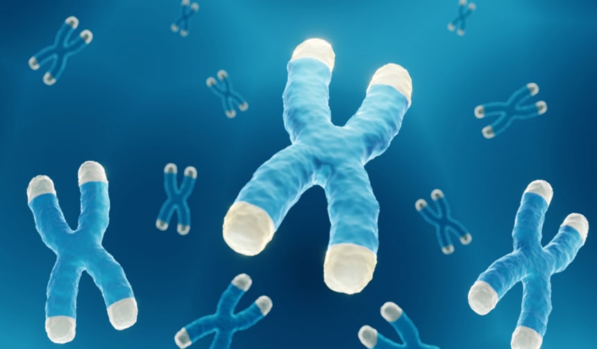 テロメアとは染色体の末端にある特殊な構造のことで、DNAの分解や修復を保護し、遺伝情報の異常な融合を防いでいる。