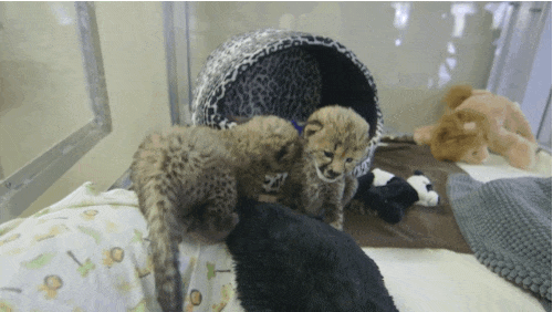 米カリフォルニア州、サンディエゴ動物園サファリパークでは、9月1日に生まれたチーターの双子の姉妹が一般公開された。映像は生後3週間に入ってガラス越しから一般公開された時のものだ。