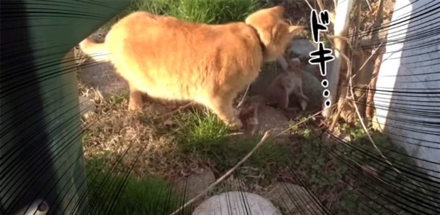 飼い猫が庭にいるリスと遭遇したようだ。リスに近づきそっとキスをした。この行為に混乱してしまったリス?「何なの?何なの?」一瞬固まってしまうリスだが、「これが愛?」とばかりに去っていく猫を追う。