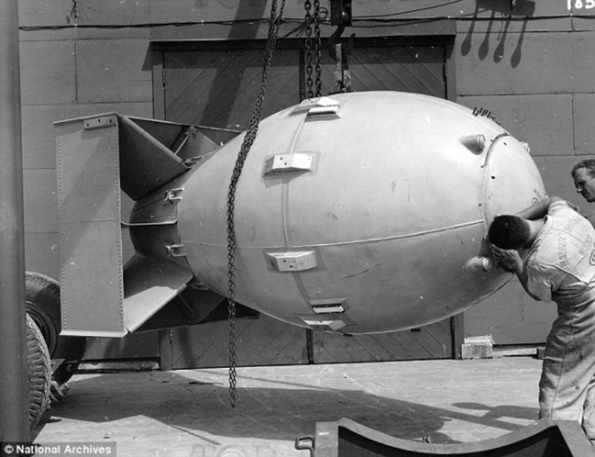 この画像を大きなサイズで見る爆撃機へ搭載される直前のリトルボーイ