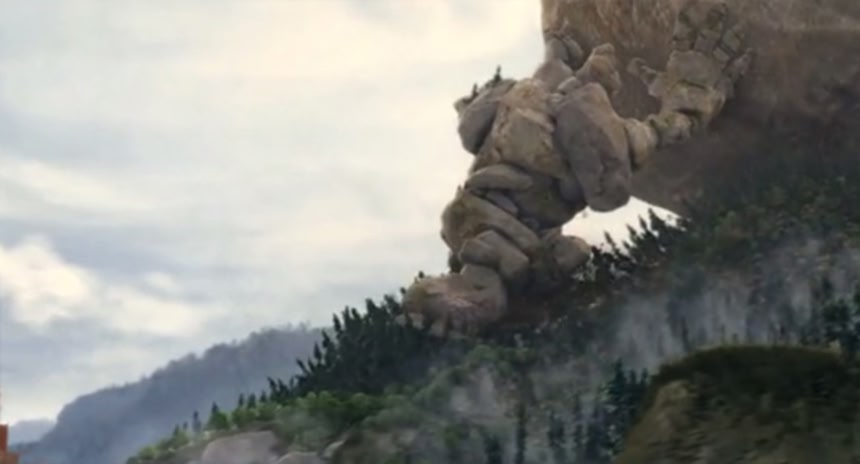 人間側から見たら迫ってくる巨大なものが岩なのか巨人なのかわからんだろう