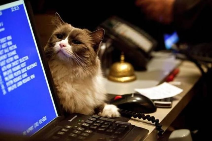 オーナーが飼ってる子が普通に職場に降りてきてるってのもおおいけど、オーナー交代時にそのままホテルに残って引き継がれる子も居るし