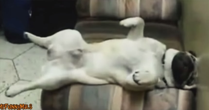 猫は柔軟な体で様々な体位で眠ることが確認されているわけだが、ところがどっこい、犬もやるときはやる。っていうか眠ることが勝っちゃった場合には、とんでもない体位で眠ることがあるようだ。