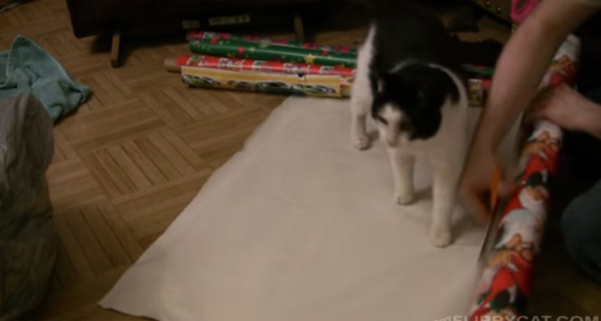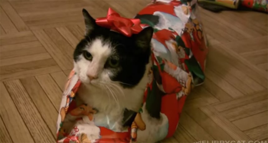 西洋のクリスマスでは、プレゼントを自宅でラッピングする場合が多い。猫を飼っているご家庭の場合だと、作業中に猫がホイホイされてくる。それじゃあってんで、猫をラッピングしてみた映像が公開されていた。