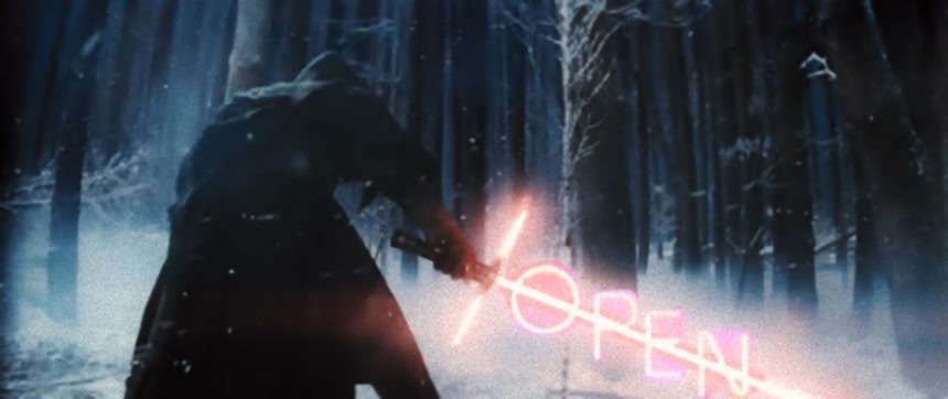 雪が降り積もる森の中で、マントを着たシスの暗黒卿らしき人物がライトセーバーを取り出す。今回のライトセーバーはのつばのような形で柄の両側からレーザーが突き出す形となっている。ちょっと手をひねったら自らの手首をカットしてしまいがちなそのデザインに賛否両論なわけだが、映像で見せているのはこの部分だけ。さっそくコラ職人たちが、このライトセーバーの完成系を妄想を加味しながら作ってみたそうだ。