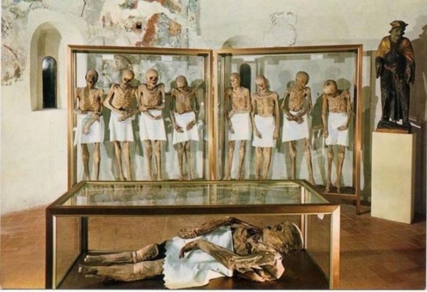 数百年にわたり、ヴェンゾーネの人々は村の大聖堂に自身の死後の身体を任せていた。1647年、大聖堂のリフォームが行われたとき、村人達は最も古い40体のミイラを発見した。完璧な状態で保存されていたミイラに、村人たちは驚きを隠せなかったという。