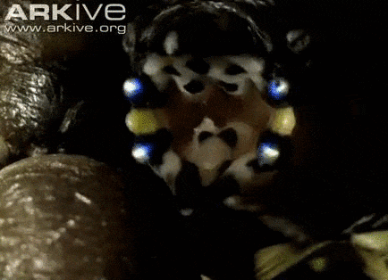 ヒナがぱっくりと口を開けると、青色や黄色のビーズのようなものがちりばめられており、その部分だけ見るとちょっとしたエイリアン。いや形状だけで言えば、映画「プレデター」にでてくるプレデターに近いものがある。