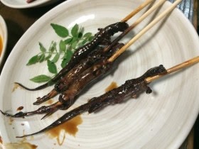 料理の品目:サンショウウオの串焼き