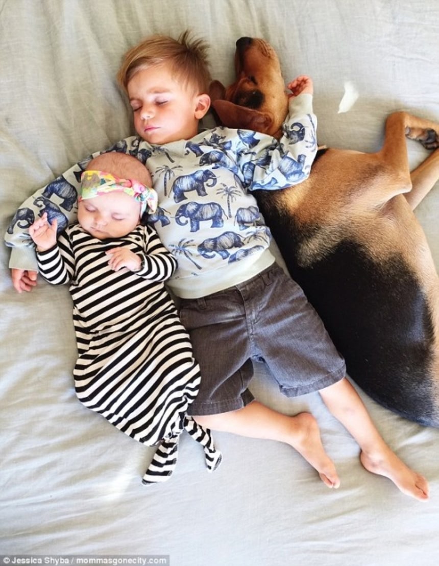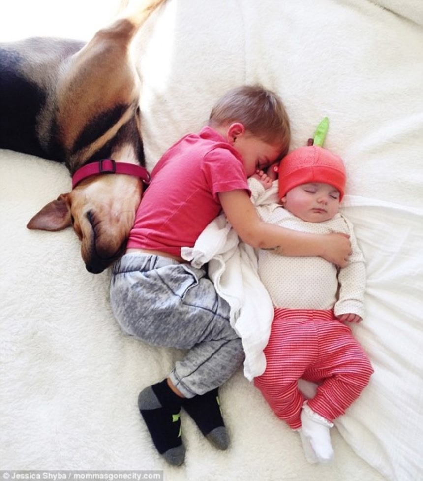 この画像を大きなサイズで見る他にも、ジェシカさんが撮影した2人と1匹のほほえましいお昼寝写真は、インスタグラムでチェックできるよ。