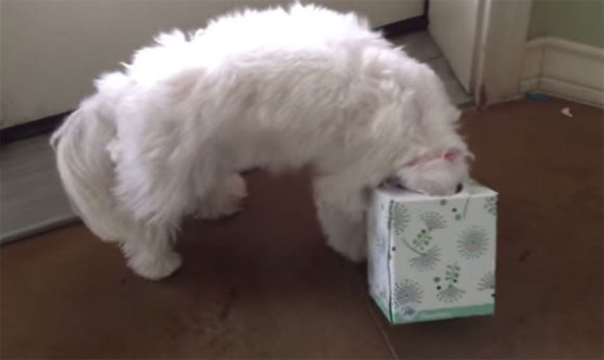 ワンちゃんのそばにティシュはだめよ
