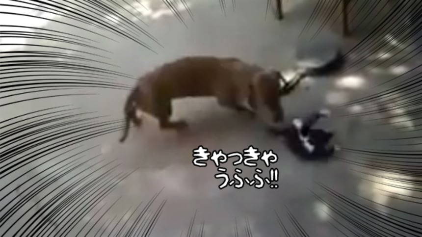 昔ムツゴ○ウ動物王国でこの組み合わせやってたけど、仔犬がいつまで経っても