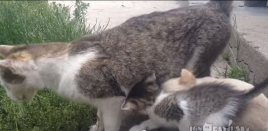 お母さん猫途中で草食べてるから具合悪かったのかな