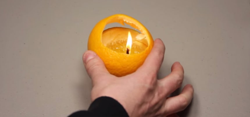 ロウソクはあるけど、ロウソクの光だけじゃ暗すぎる…。そんな時は、アルミ缶を使おう。アルミ缶の側面を切って、両側に開いたら、中にロウソクを入れる。こうすると、ロウソクの光が缶の内側で反射してより明るくなるし、ロウソクを風邪や雨からも守ってくれる。