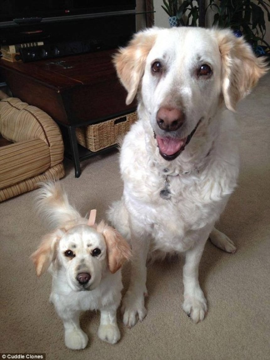 飼い主のクローンぬいぐるみ はいいかも。留守の時においておいたら、わんこも少しはさみしくなるなるのかな?でも自分のぬいぐるみが家にあったら、気持ち悪いかも。