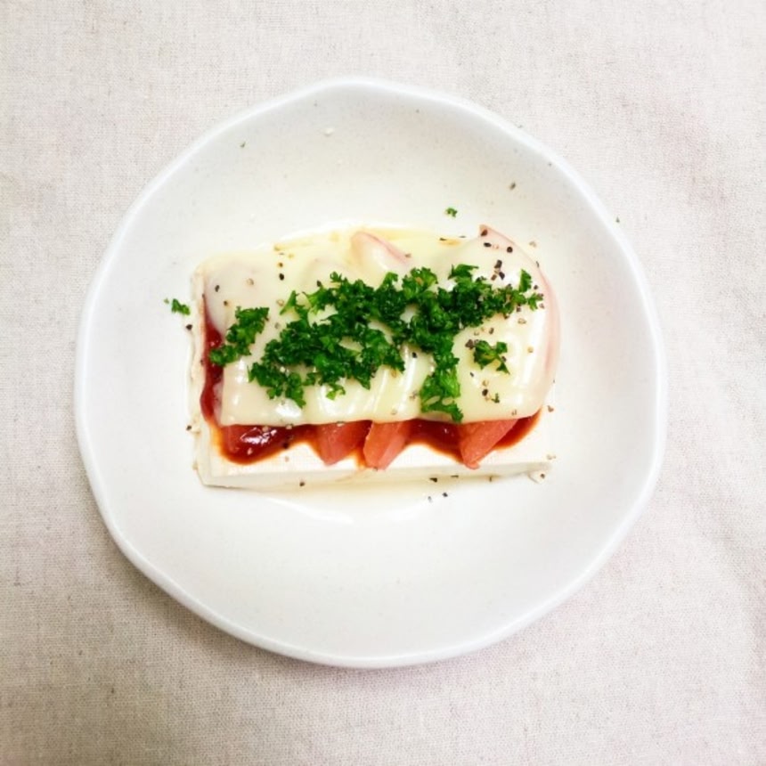 この画像を大きなサイズで見る豆腐の上にケチャップ、トマトの薄切り、スライスチーズ、パセリを乗せてレンジで1分。仕上げにお好みでブラックペッパーをかける。スライストマトがなくてもいける。ケチャップの代わりにピザソースでもOK。ピザ豆腐なら炭水化物が抑えられるのでダイエットにも最適。そしておいしいときたもんだ。