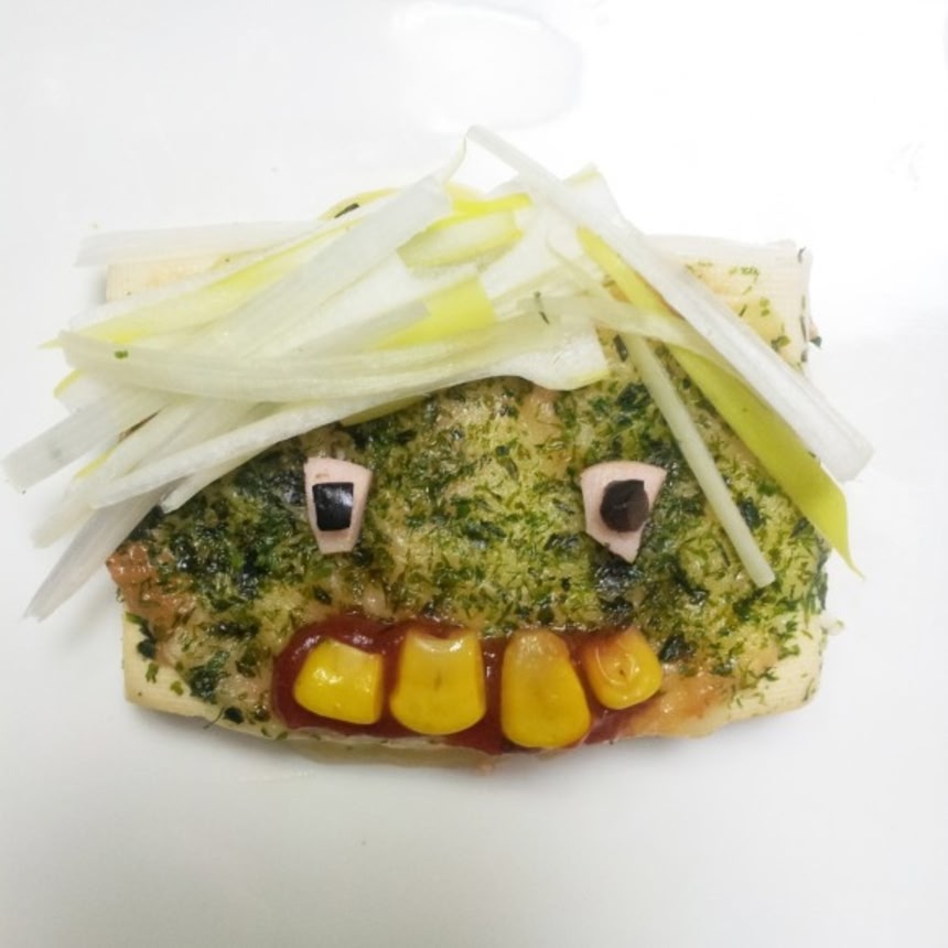 この画像を大きなサイズで見る豆腐の上に味噌を塗り、スライスチーズの代わりにピザチーズ。青のりをパラパラかけるとあらおいしい。お酒のおつまみにぴったりな一品ができあがり。