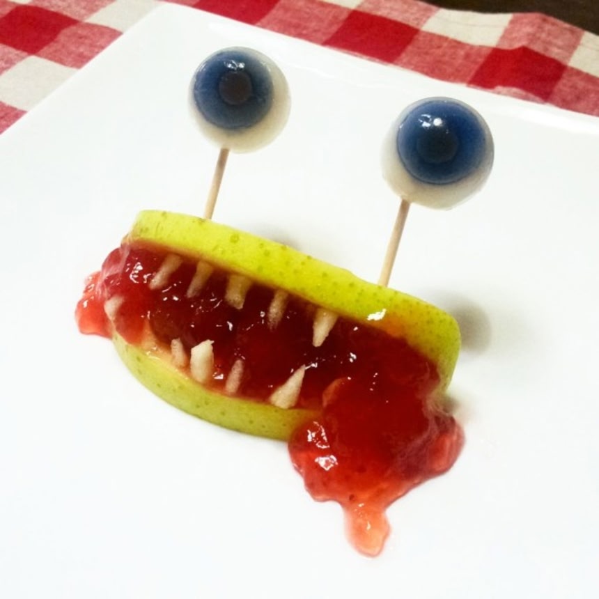 この画像を大きなサイズで見るこちらは海外からのネトメシとなるわけだが、今回お届けするのは簡単にできてしかもホラーが楽しめる、「リンゴ怪獣」である。りんごのおいしいこの時期に是非試してみたい、視覚的にも楽しいスイーツ(怖)である。
