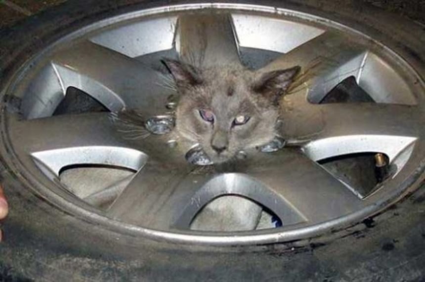 側溝みたいなのと、ホイールに嵌ったヌコ様はどうやって救出したのだろうか?