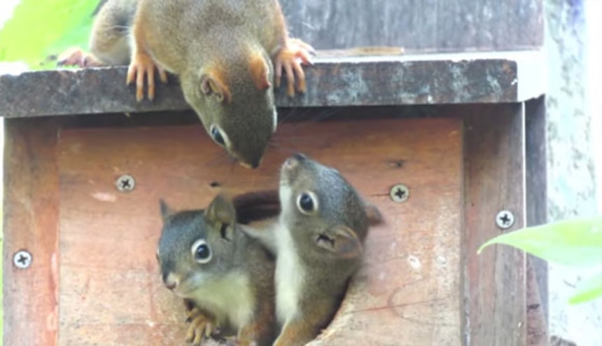 ところがこの巣箱、あらちょうどいいサイズ、とばかりに占領してしまったのはリスの一家。子どもたちもこの巣箱がお気に入りのようで、出たり入ったりを繰り返しているユーモラスな姿が映像に収められていた。
