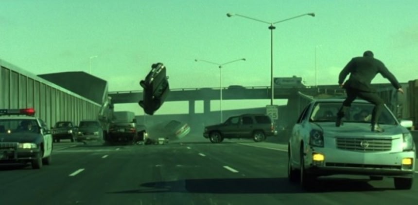 中でも断然、一番大規模で複雑だったのは、マトリックス リローデッドだ。複雑なカットや長時間に渡る撮影が必要性だったため、高速道路でのシーンは実際の道路を使用するわけにもいかず、撮影部隊は彼ら専用の高速道路を250万ドル(約3億円)で建設したのだった。