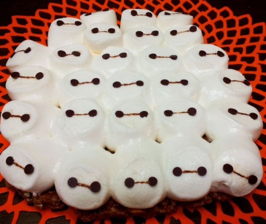 チョコフレークナッツヌガーを平たく円形に伸ばし、ベイマックスを大量に増殖させてみることにしたよ。ちょっとしたパーティーにはもってこい、なはずなんだ。