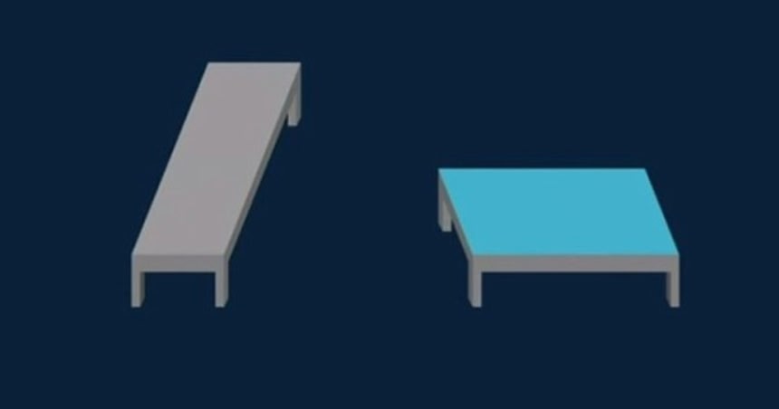 3つめの例は、形が違って見えるが同じサイズを持つ2つのテーブルだ。