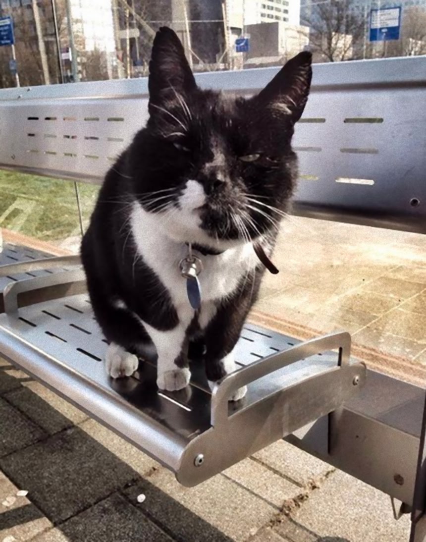 この画像を大きなサイズで見るオランダ、ロッテルダムのクラーリンゲン内を走るトラム(路面電車)の停留所にはとても立派な猫がいる。彼の名前はアケさん。アケさんは、10年間の長い間、出勤した飼い主が電車から降りるのを待っているのだ。