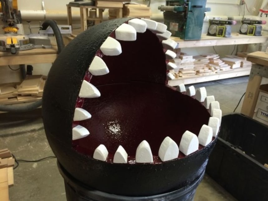発砲スチロールなどの廃材に、エポキシ塗装して仕上げたという猫ホイホイなワンワン。その製造過程を見ていこう。