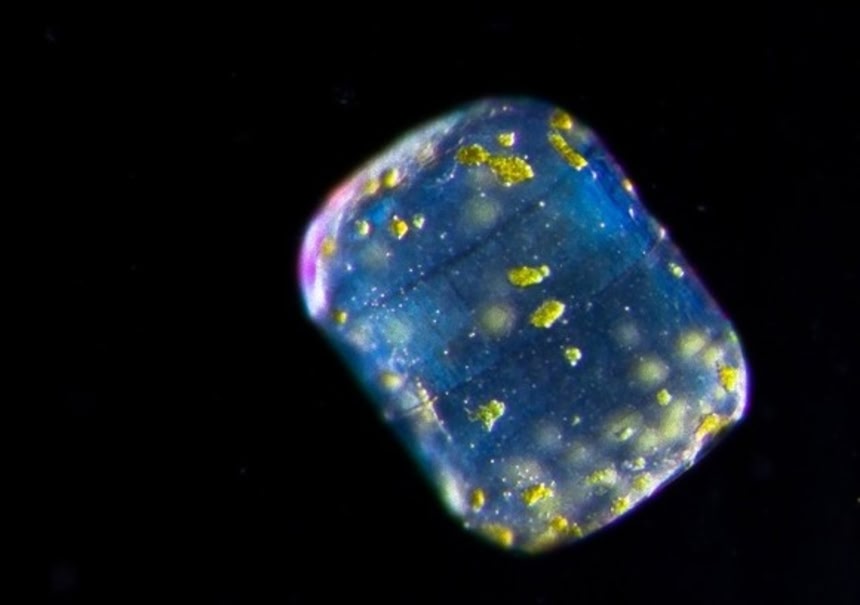 この画像を大きなサイズで見るチームはこれまで未知の単細胞真核生物や多細胞生物体を数多く発見した。写真は、インド洋にいるLauderia annulata。これは大きさ0.2ミリの珪藻の塊で単細胞生物。体内に緑や黄色に光る葉緑体をもつ。色とりどりのガラスの破片がキラキラ輝いているように見えるのは、細胞の外側がガラス質でできているからだ。