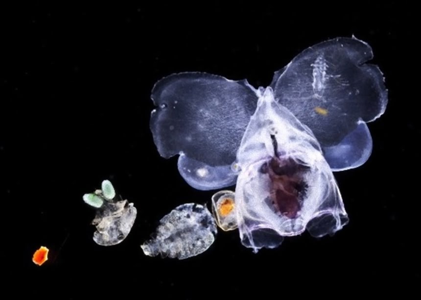 この画像を大きなサイズで見るチームは35000種以上の動物プランクトンを集めた。写真は、軟体翼足類、甲殻カイアシ類。