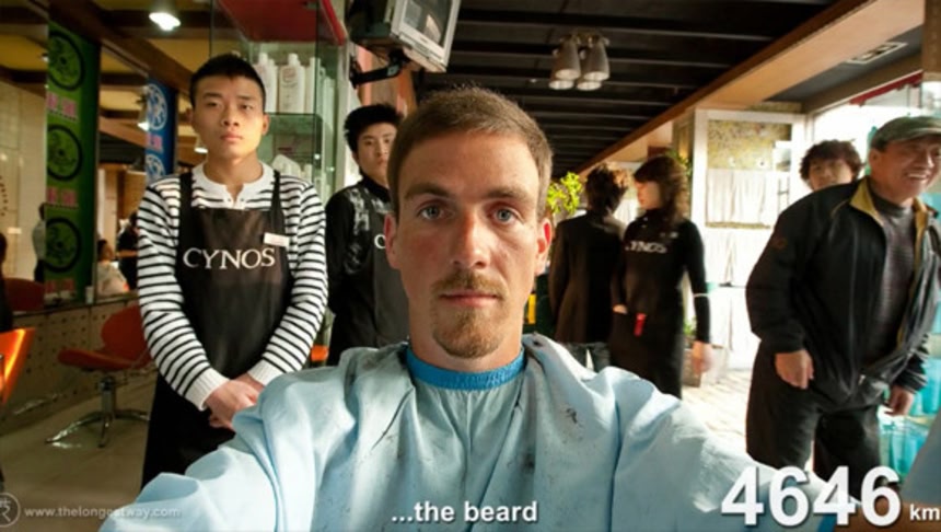 それでもなんとか歩き続けたクリスだが、カザフスタンの国境近くで歩くことを断念した。歩いた距離は4646㎞。ここまで歩いたのだから、進むのも勇気なら止めるのにも勇気がいる。揺らぐ心に決別を付けるため、クリスはこれまで伸ばし続けた髪の毛やヒゲをカットした。