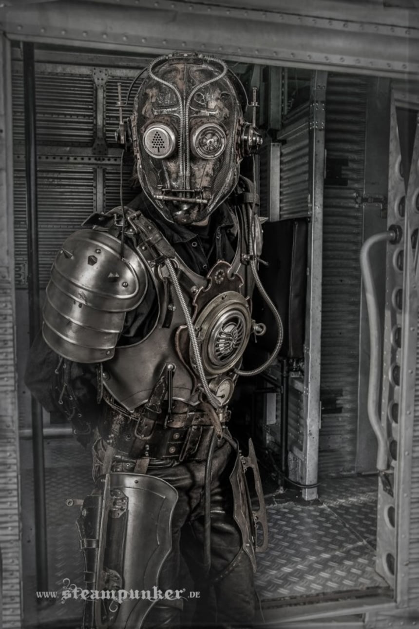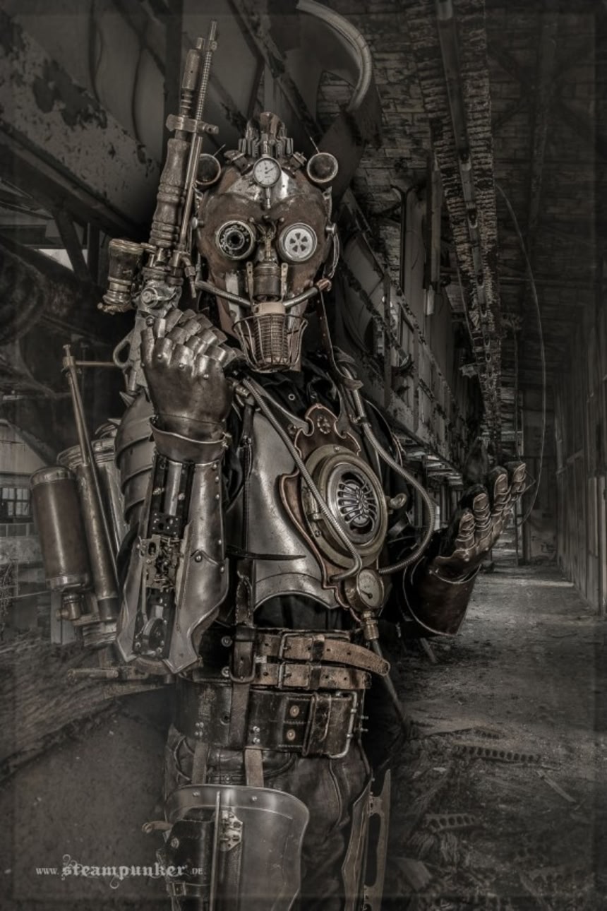 フリーマーケットで使える材料を買い集め、そこに革、鋼、真鍮、銅、木材、ガラスなどで細工し、完成度の高いスチームパンクな衣装を生み出しているのは、ドイツ、プラウエン在住のヴィータ(38)である。