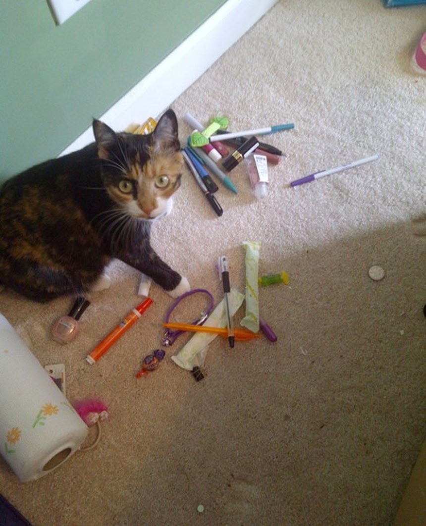 この画像を大きなサイズで見る■7.細長いものを集めるのが好きなようだ。ペン、リップ、マニキュア、タンポン、キッチンタオル。ん?女子力高いぞ。