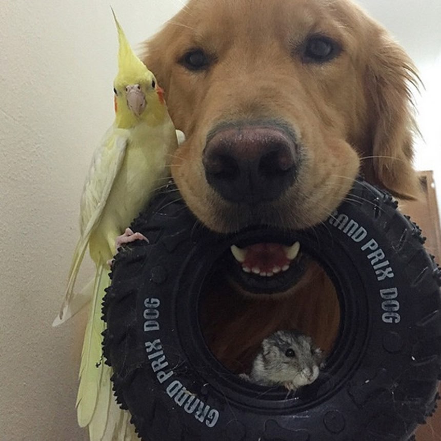 ボブさんはブラジル、サンパウロに住むオスのゴールデンレトリバー。包容力の大きな男性は女性に愛されるというが、ボブさんはどんな動物にだって愛されちゃう。