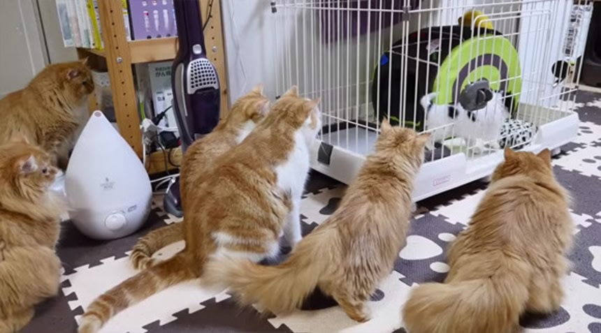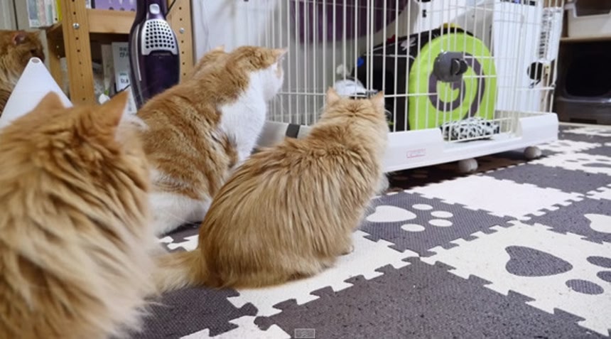 猫たちが「なんだこいつ……」みたいな感じでみててかわいい