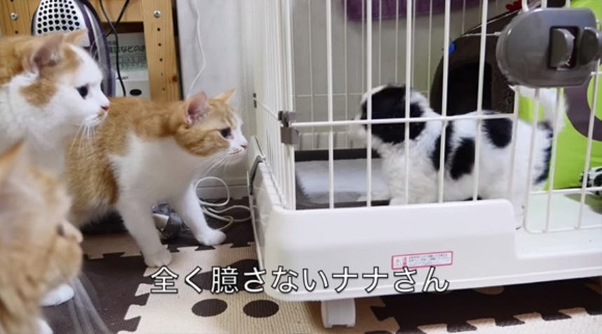 今はまだお互いストレスにならないように、ケージに布をかけて隔離中だが、そのうち楽しく仲良く遊んでいる姿が見られることだろう。今後もマンチカンズとナナちゃんからは目が離せないぞ。