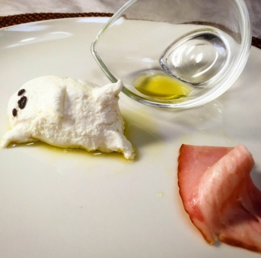 すでに出オチ感が満載なのだが、やはりこれっしょ。焼きヨーグルトのぐだぐだ感はぐでたましかないっしょ。ってことでやっていただきましたホワイトぐでたま。クリーチャー職人のクマ姉さんにかかれば、脱力感溢れるチーズ味ぐでたまのできあがりっと
