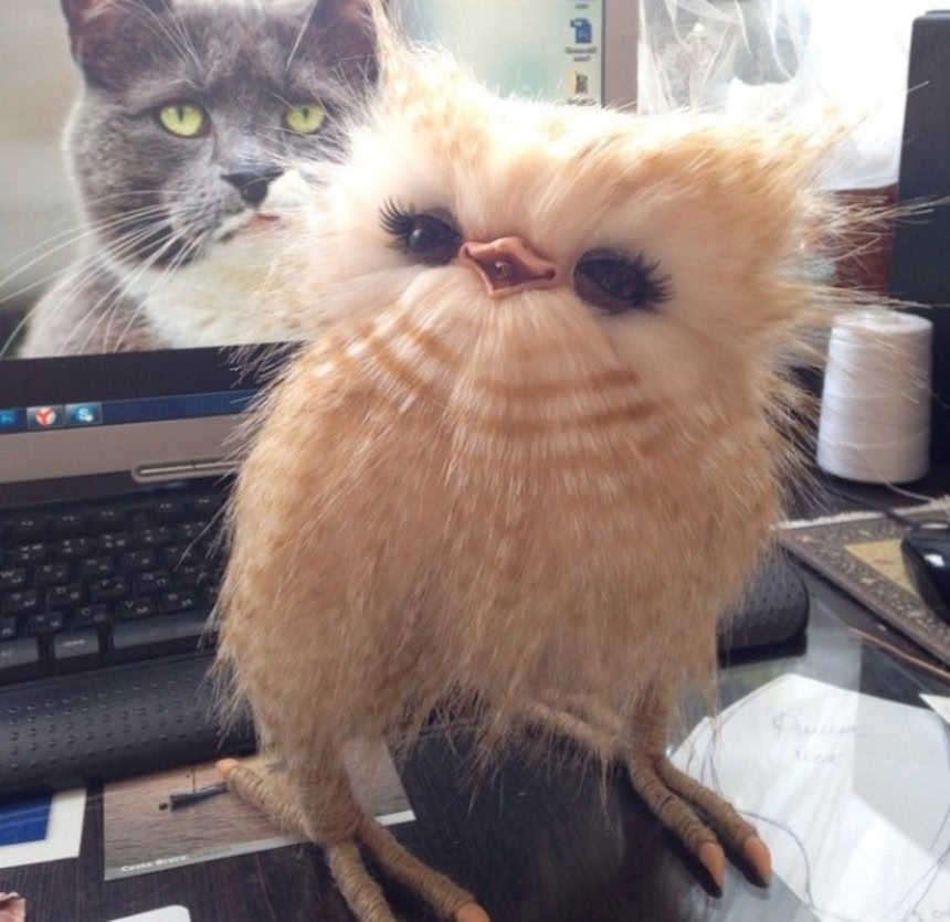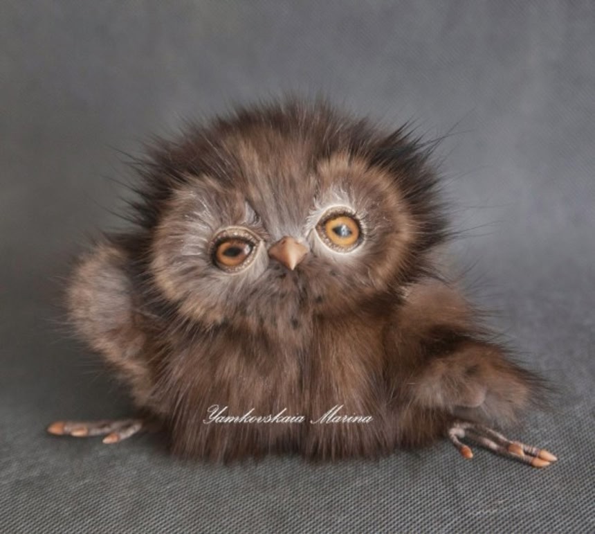 これなんてフクロウの種類?思わず騙されてしまう人も続出のミステリアスなフクロウ人形は、ロシアのアーティスト、Yamkovskaia Marina さん(39)による作品だ。彼女は自宅付近に住む野生動物、とくにフクロウの魅力に目覚め、2014年より制作を開始した。リサイクルショップで購入した古い本物の毛皮を使用し、ガラスの目玉でリアリティを出しながらも、童話の世界の住人のようなぱっちりつけまつげなどで独特のファンタジーを演出している。