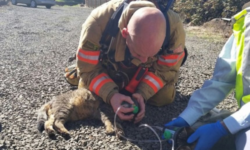 特別仕様の酸素マスクを猫にあてたところ、1分もしないうちに猫は息を吹き返したという。よかったよぅ。アメリカでは火災などの際、動物の命を救うための特殊なペット用酸素マスクがあり、現場にて大活躍している。